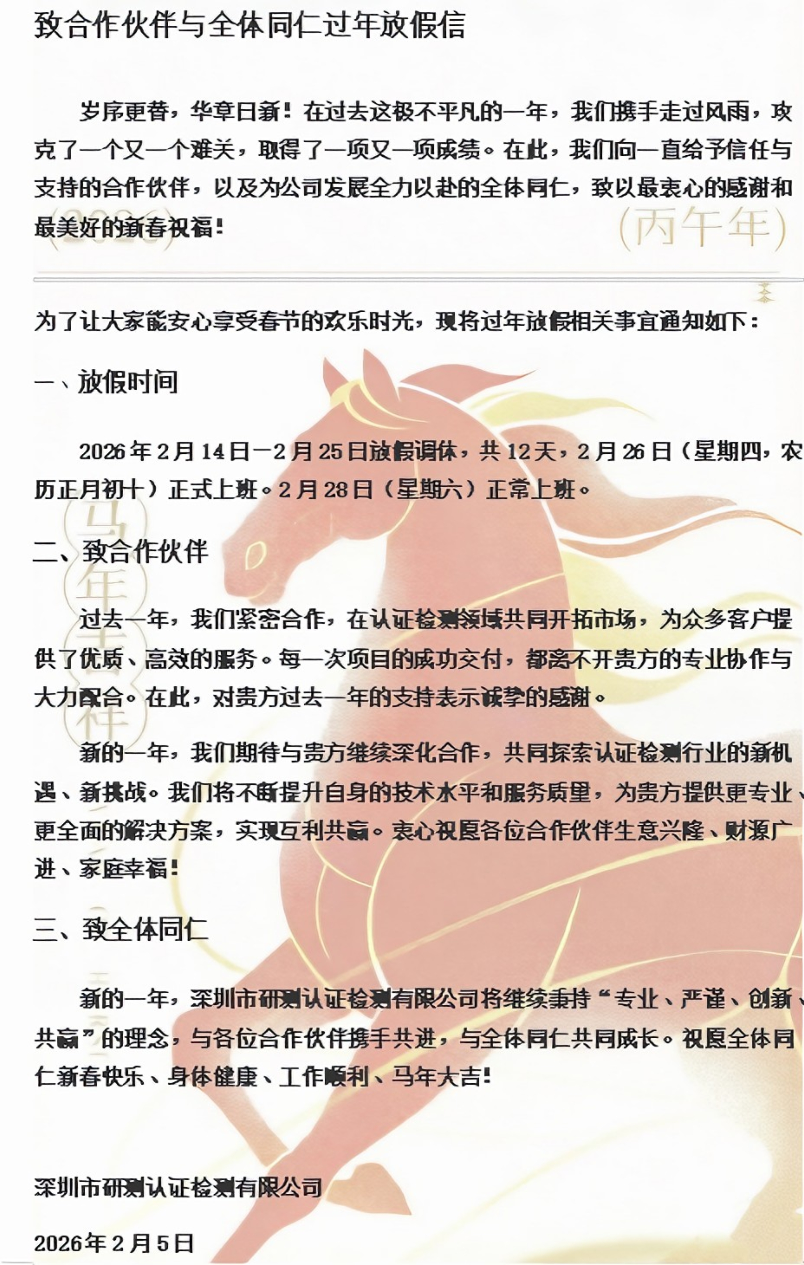 致合作伙伴与全体同仁过年放假信